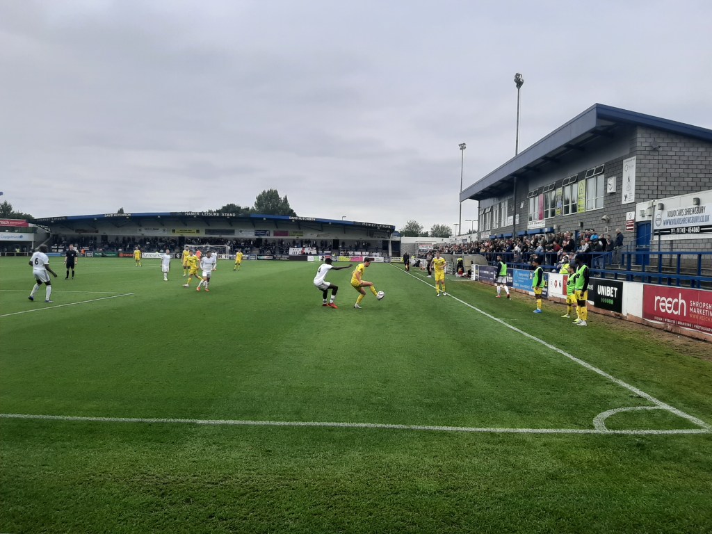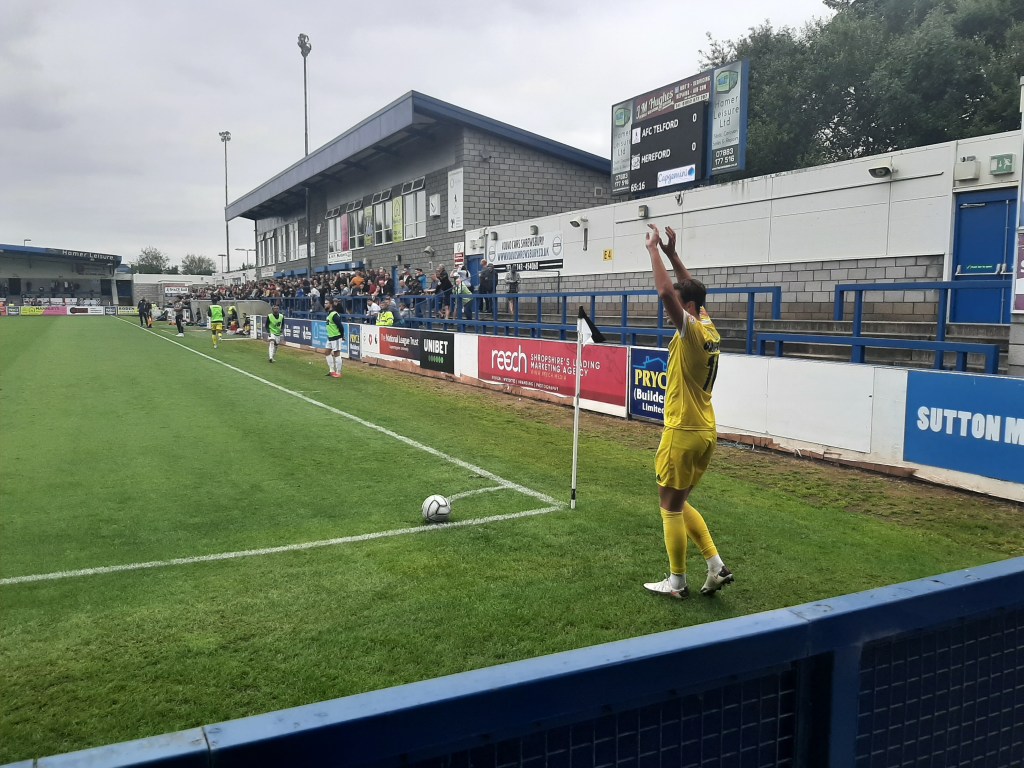 This blog has ended up being three weeks late due to my US Open tennis blog and other work commitments. Old news as they say. Anyway, I have never been to Telford away and now I am located back in the Midlands there weren’t too many excuses I could think of for not going. A 45-minute drive and I was in business, apart from the fact I didn’t turn up where I thought, I basically screwed up the directions on my phone. Don’t ask me how but I ended up in the middle of nowhere with an overgrown pitch. Not sure how even I could get it this wrong! I would like to say it was their old ground….it wasn’t. It was then a mad dash to the New Bucks Head, luckily parking was easy enough and free. I had got my ticket online and after a quick body search, I was there. They do love to check under your cap the stewards at these places, maybe they mistake my ponytail for a flare.