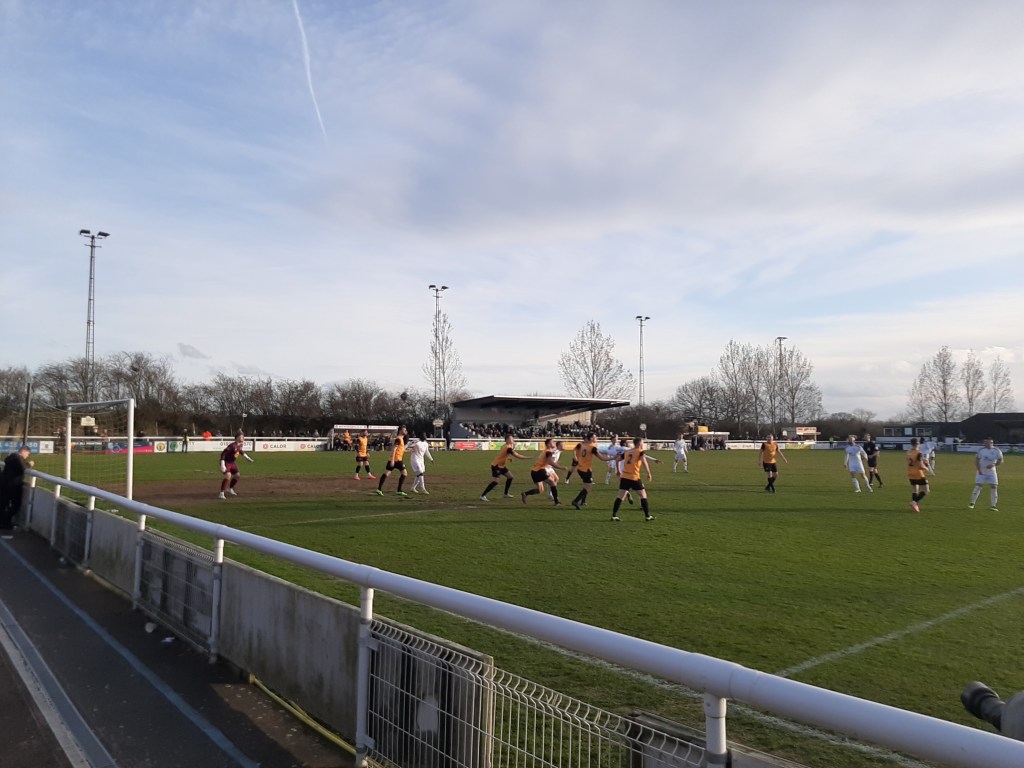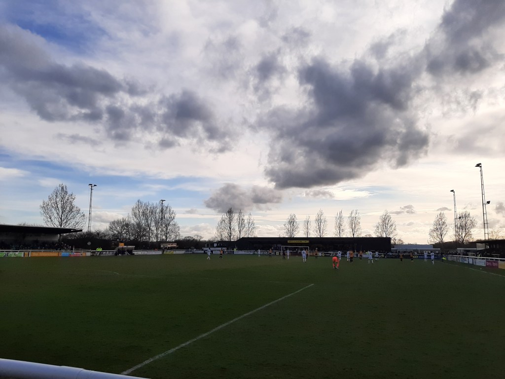 It is from here on that I am struggling for words as there really isn’t much to write about as the match highlights would vouch for. We had a £5 double cheeseburger and that was probably the best value we saw for the next 80 minutes and the fact I had a nice chat at half-time with a few Bulls fans when having a vape. Ben Pollock probably came closest for us when trying to poke the ball home in the first half but it was too close to the keeper. For most of the match, we restricted Leamington to speculative efforts, none of which bothered me and if you know me that means quite a lot as I am always stressing. Sadly, we were the same in the final third ourselves. We did give it a (bit of a) go in the last ten but it was long-range efforts that were never going to trouble their keeper. I think Steve Burr summed it up nicely after by saying that “There wasn’t much in the game today and there wasn’t a great deal to shout about today. Chances were very limited today and it was very difficult to get the ball down and play.” He also said, “the pitch was awful”.